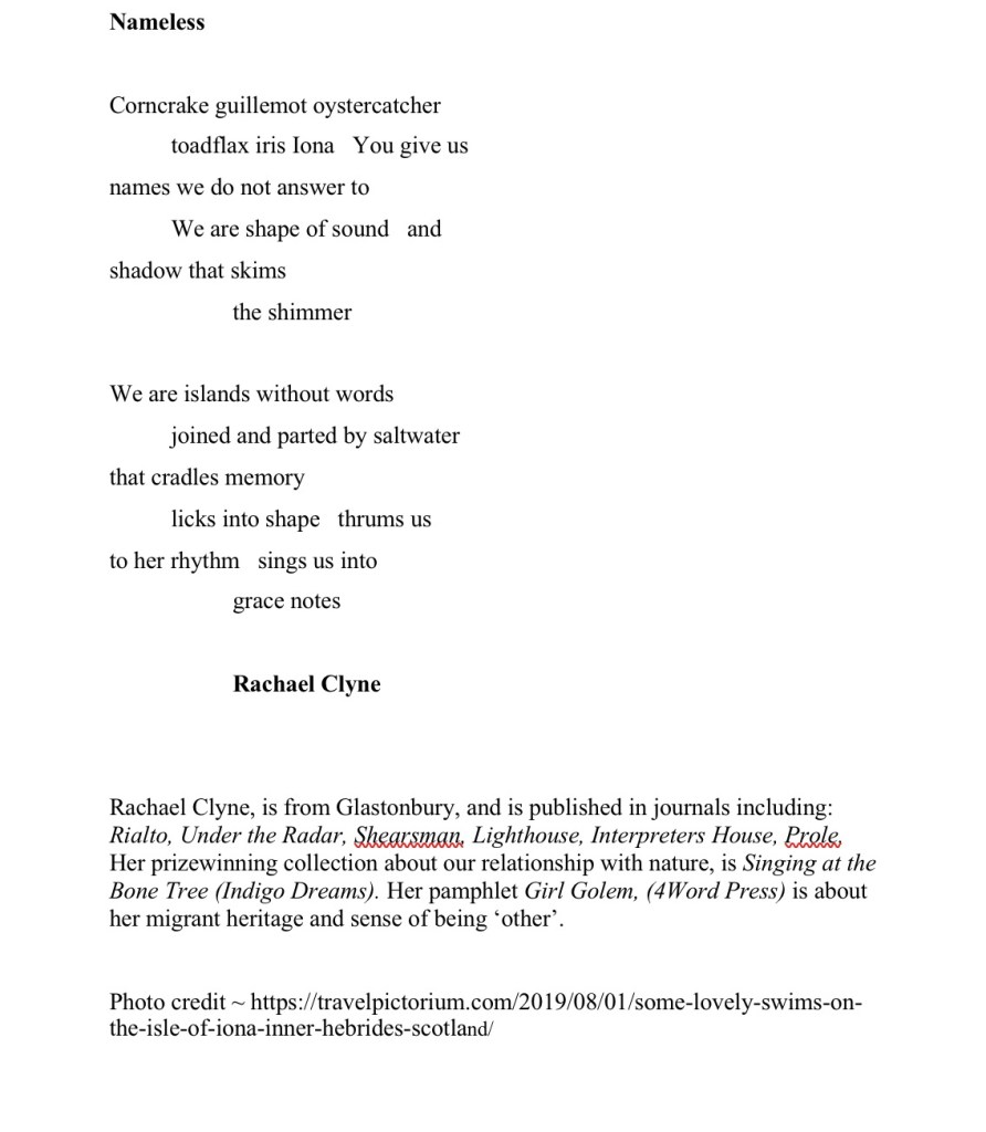 Posted on 17th Mar 202017th Mar 2020 by writingatthebeachhutNameless ~ A poem by Rachael Clyne Share this: Click to share on X (Opens in new window) X Click to share on Facebook (Opens in new window) Facebook Like Loading...