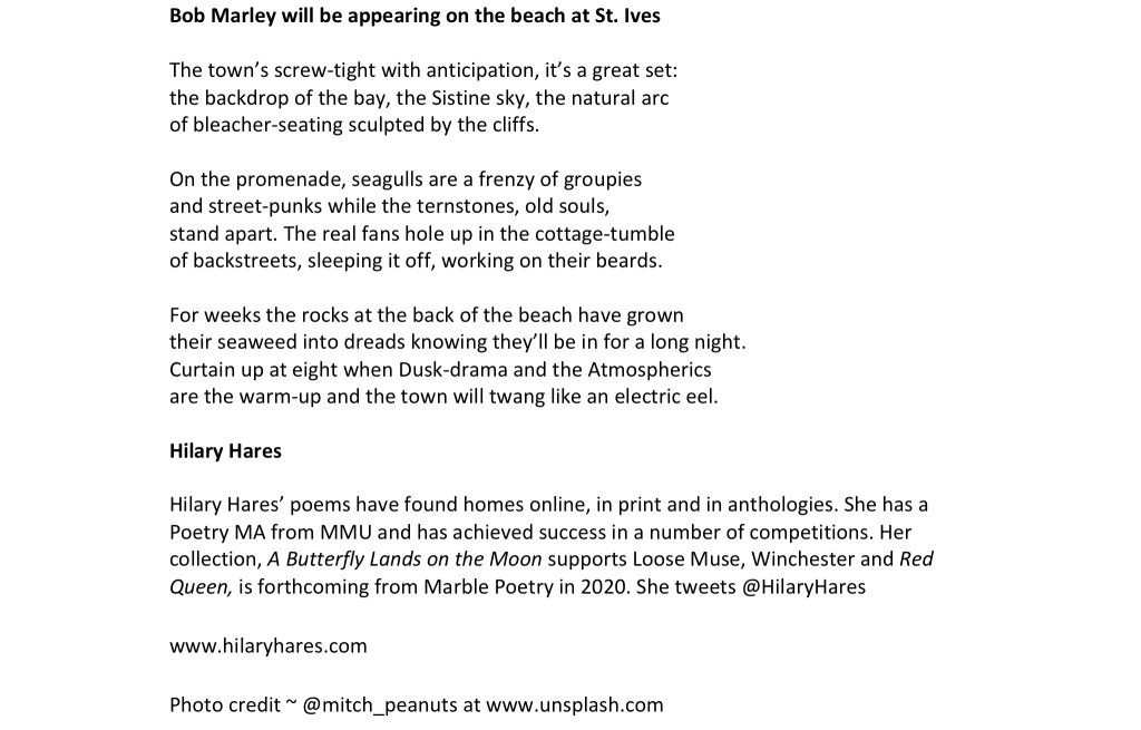 Posted on 2nd Apr 2020 by writingatthebeachhutBob Marley will be appearing on the beach at St. Ives Share this: Click to share on X (Opens in new window) X Click to share on Facebook (Opens in new window) Facebook Like Loading...