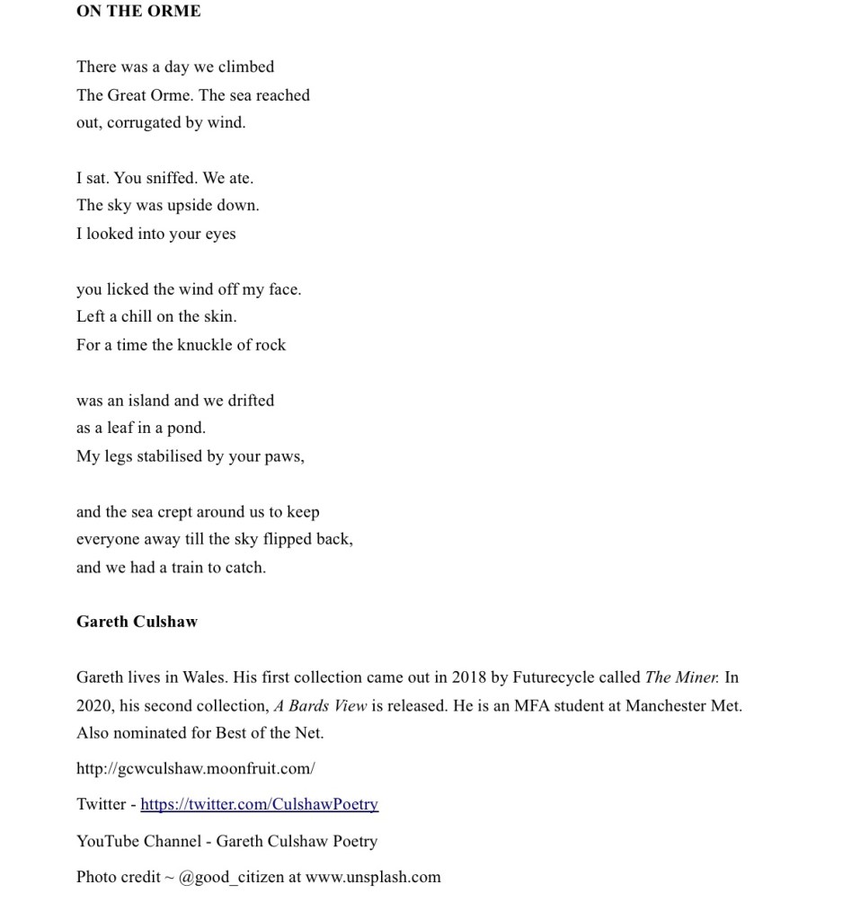 Posted on 24th Apr 202025th Apr 2020 by writingatthebeachhutON THE ORME ~ A poem by Gareth Culshaw Share this: Click to share on X (Opens in new window) X Click to share on Facebook (Opens in new window) Facebook Like Loading...