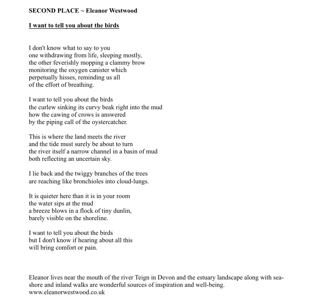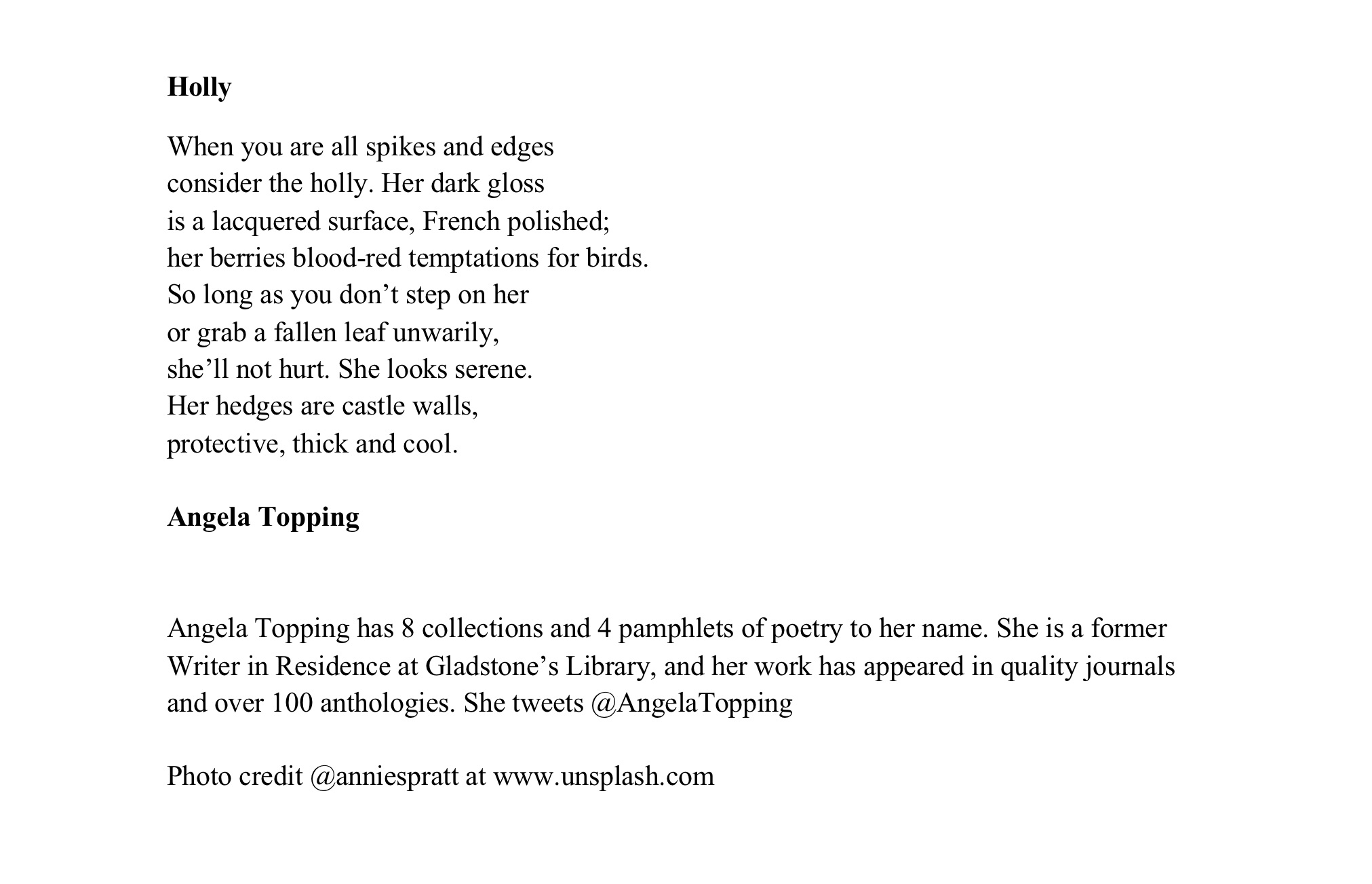 Carole Bromley is a York-based poet, stanza rep for the Poetry Society, winner of a number of prizes including the Bridport and the 2019 Hamish Canham Award. Latest publication, a pamphlet, Sodium 136, from Calder Valley Poetry. She tweets @CaroleBromley1